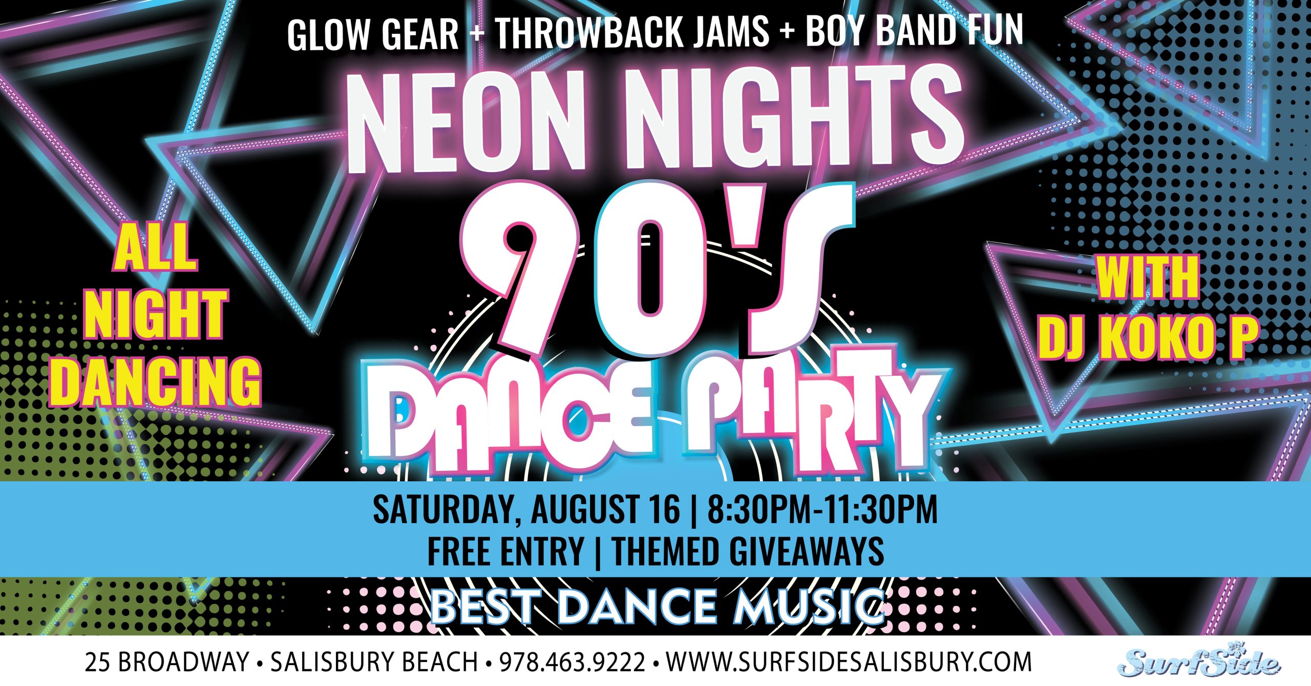 Dance on the deck with DJ Koko P, sip seaside drinks, and score fun themed giveaways all night long! 🌊✨Take a break from the dancing and watch the Salisbury Beach Fireworks Show illuminate the sea line from the SurfSide Deck at 10:15PM.